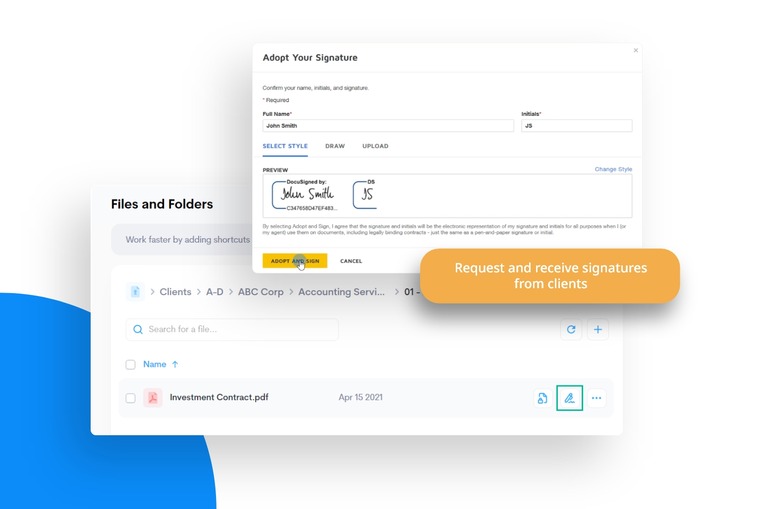 Whether you’re onboarding new clients, collecting engagement signatures, or managing tax prep details, SmartVault lets you build and automate workflows using custom forms and PDFs, without printing, scanning, or emailing.