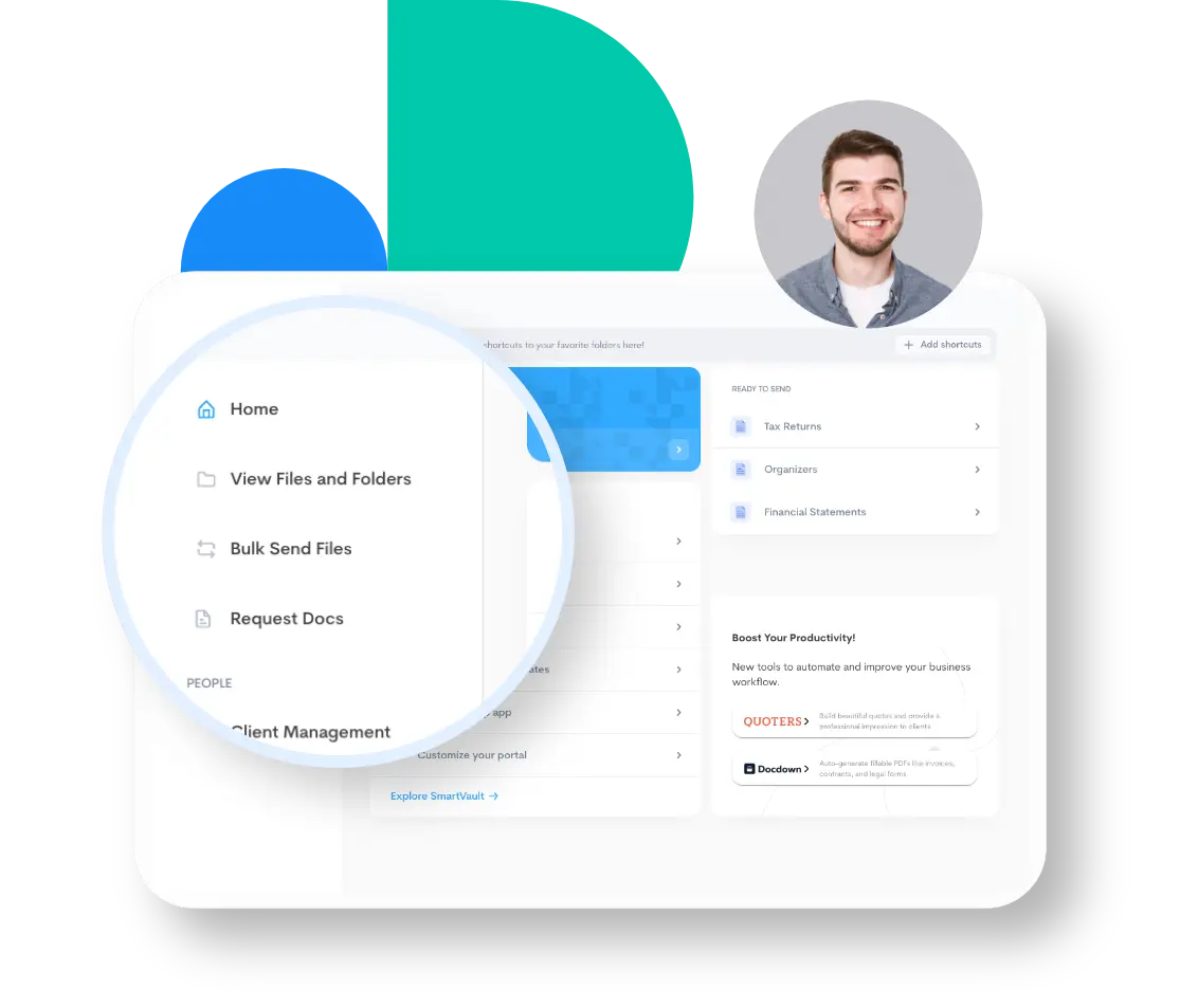 Free your team from repetitive tasks by automating your entire document workflow, from request to archive. SmartVault simplifies document intake, routing, and collaboration with clients and staff, so you can spend less time chasing files and more time delivering value.